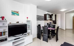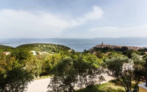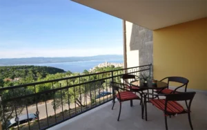 Apartament Mirna 2 to bardzo komfortowy, nowoczesny apartament z przepięknym widokiem na morze. Apartament jest bardzo przestronny i dobrze wyposażony. Z wyposażenia chcielibyśmy wyróżnić klimatyzację, WiFi, telewizję satelitarną, pralkę i zmywarkę. Oprócz nowoczesnego wystroju, główną cechą tego apartamentu jest zadaszony balkon z pięknym widokiem na morze i stare miasto Vrbnik.